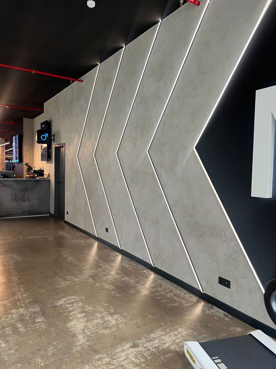 Dekorativní omítky v fitness centru NEXT.MOVE, Praha